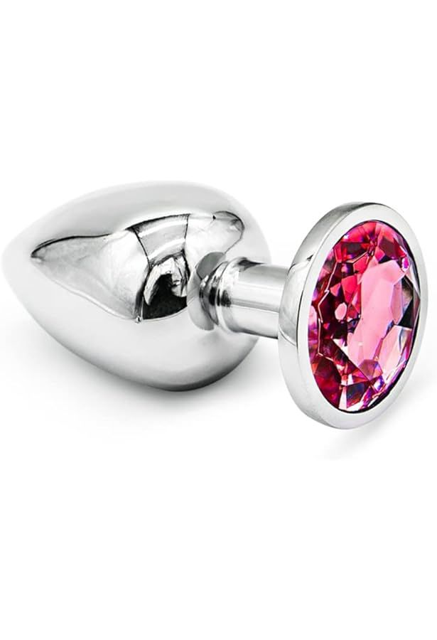 Feito em metal escovado liso este plug anal é um modelo elegante e sofisticado, na sua base uma bijuteria que imita uma pedra preciosa faz o acabamento.