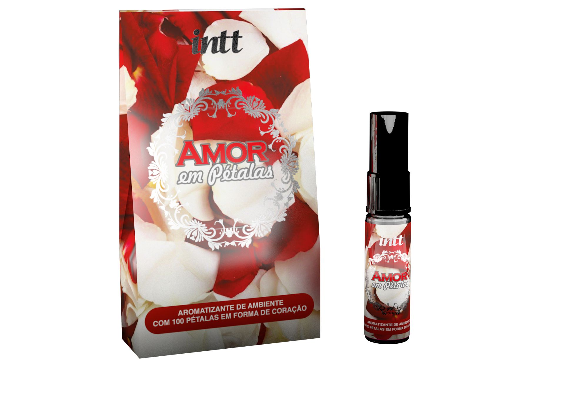 Contém: Perfume com 15ml e 100 pétalas de cetim em formato de coração.