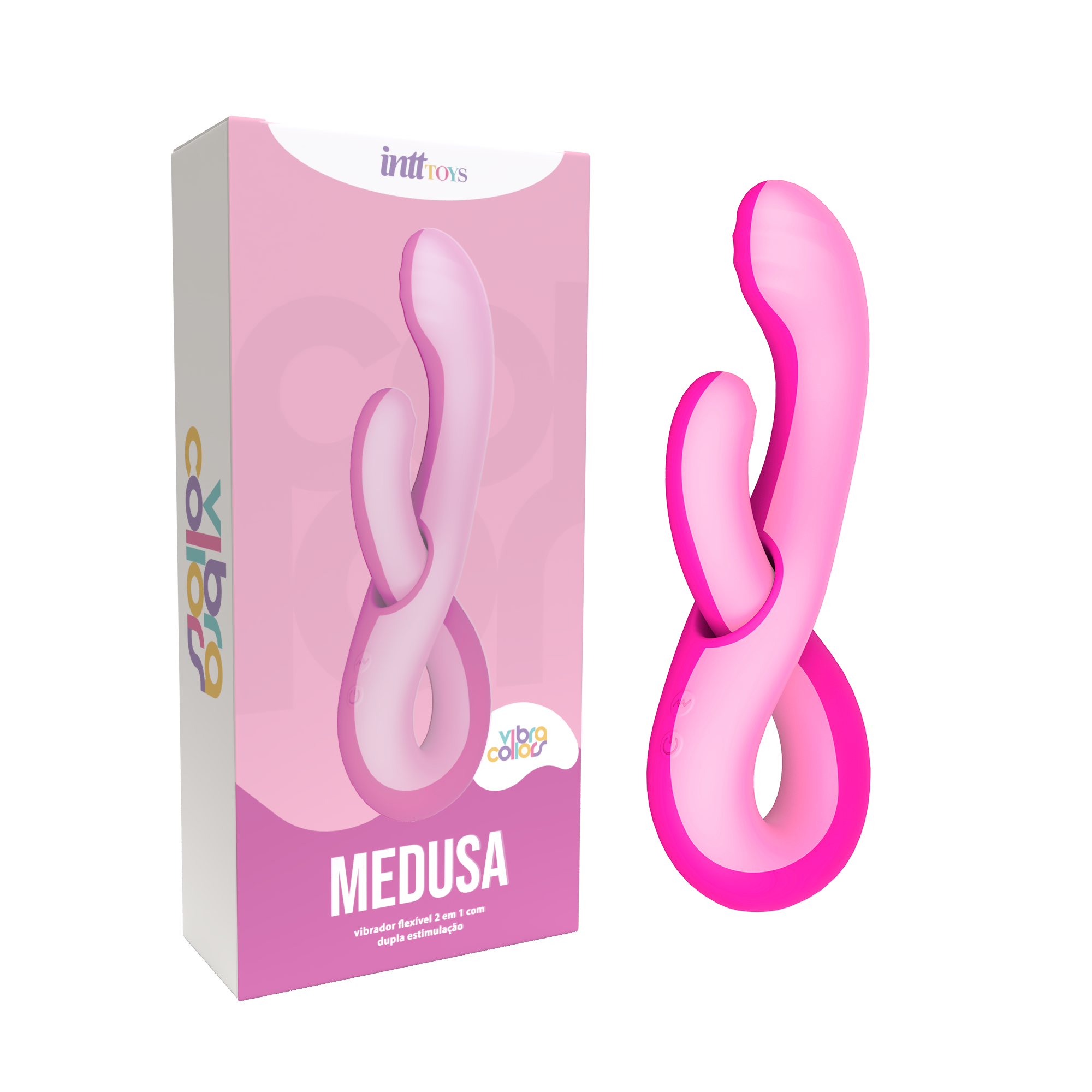Descubra a Medusa, o vibrador flexível e inovador que eleva suas experiências ao próximo nível. Com 10 modos de vibração, dois motores independentes e design ajustável, ele oferece dupla estimulação de maneira única. Use em sua forma entrelaçada para explorar o prazer interno e clitoriano simultaneamente, ou escolha entre as pontas longa ou curta para uma experiência totalmente personalizada.